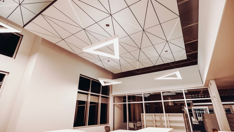 After seeing the DesignFlex product by Armstrong weeks again, we knew we wanted to find a place to use the heavily patterned ceiling system somewhere and it turns out this might be the right application for it. DesignFlex allows for the incorporation of triangle and parallelogram shapes in addition to the traditional 2x2 and 2x4 panels that usually form the grids in acoustic ceilings. DesignFlex also contains options for colored panels, adding another layer to the ceiling plane. And I bet you thought that was it? Armstrong also partners with a few lighting manufacturers that make customized lighting fixtures to run along the grid of the ceiling. The flaw? Armstrong offers Revit models for a lot of their products, but not for this one.